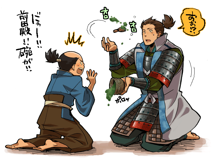 利家と秀吉は抹茶まみれになって